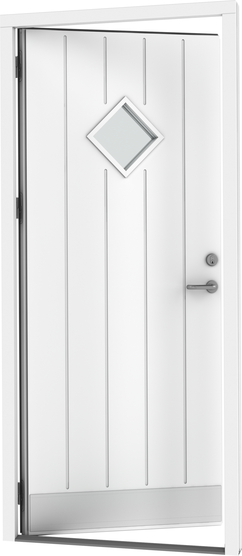 Flush entrance doors are available in a number of external designs and can incorporate a range of glass apertures.