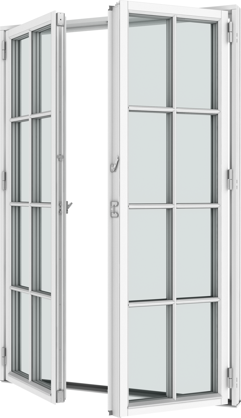 - Two espagnolette handles with handle operated brake, which can keep the door open in a random position under calm weather conditions (not possible with 180° hinges).