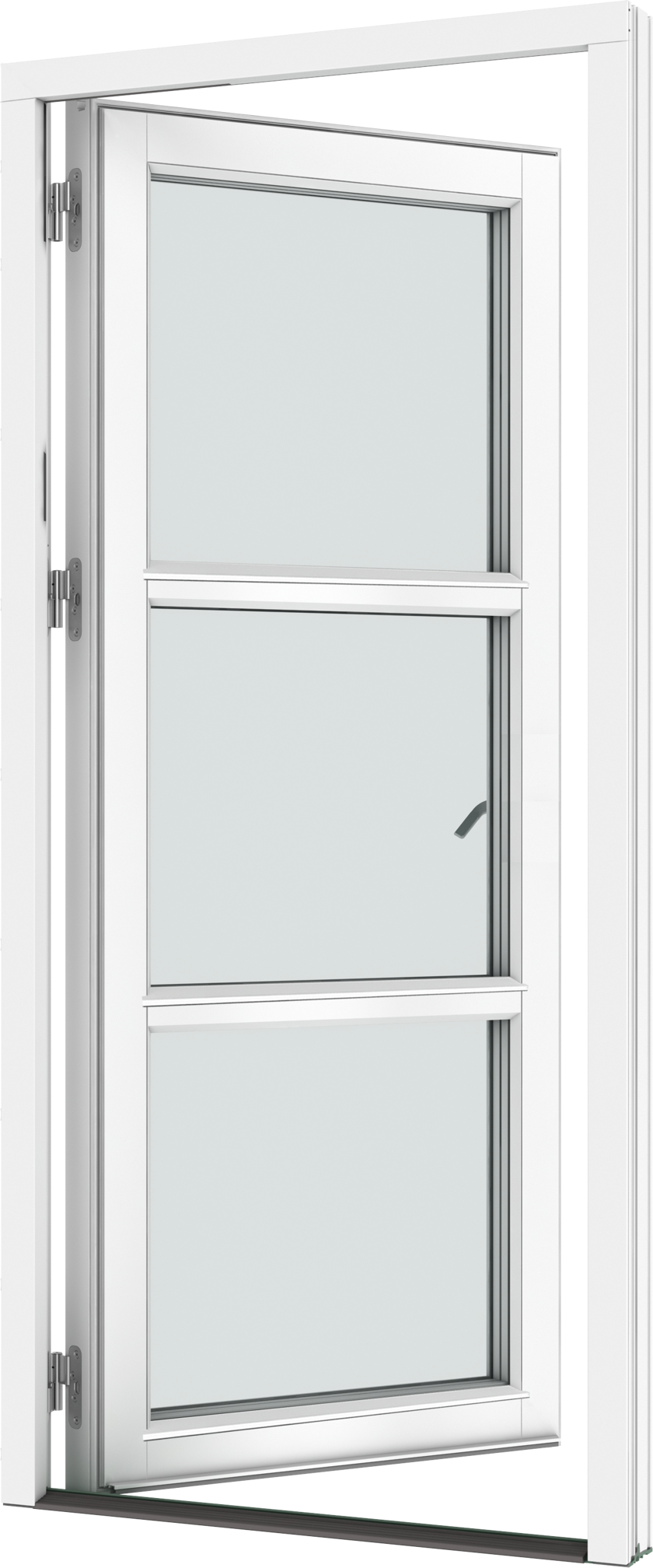 The handle operated brake can keep the door open in a random position under calm weather conditions between approx. 10-85°.
